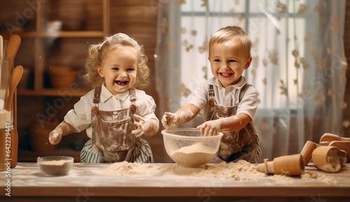 laugh, sister, brother, apron, toddler, joyful, learning, enjoy, indoor, joy, playing, sibling, together, hat, smile, children, funny, smiling, happiness, pretty, people, boy, fun, family, kitchen, happy, home, 2, young, caucasian, little, girl, preparation, cute, preparing, childhood, lifestyle, baker, baking, flour, cookie, dough, food, beautiful, cook, pastry, cake, cooking, dessert