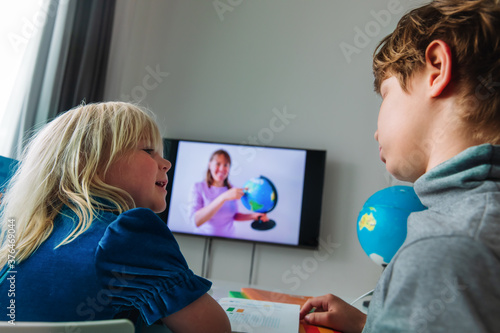 remote, distant, school, learning, online, class, video, chat, conference, boy, girl, family, brother, sister, sibling, raise, hand, active, home, studying, computer, education, monitor, screen, outbreak, group, virus, corona, zoom, student, communication, cyberspace, connection, distance, wireless, call, network, web, lesson, preschool, course, study, homework, quarantine, teacher, work, e-learning
