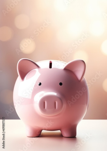 Kids pink piggy bank moneybox with nice sunlight, savings for future. Generative Ai.