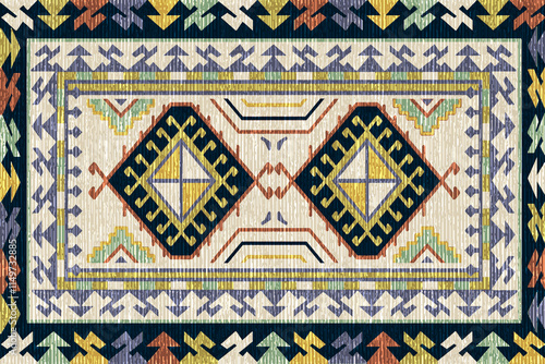 Kilim and Aztec Carpet modern Pattern with trending colors in high resolution