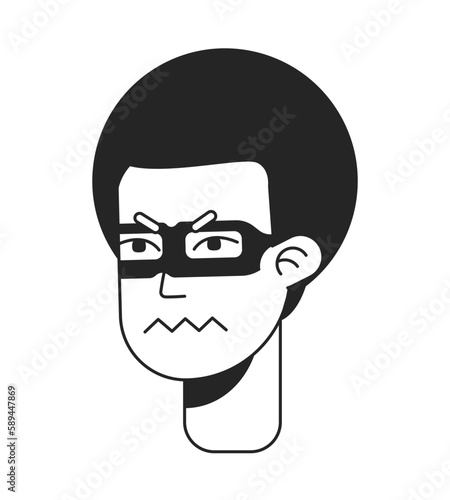 Kinky haired gang member feeling angry monochromatic flat vector character head. Black white avatar icon. Editable cartoon portrait. Lineart ink spot illustration for web graphic design, animation