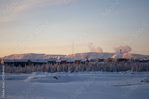 Kiruna, Sweden - January 24, 2025: View the of the new city center of Kiruna in cold weather.