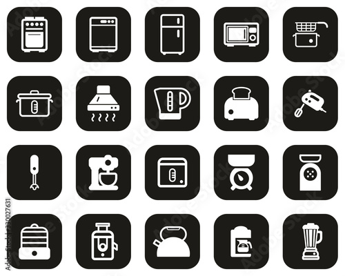 Kitchen Appliances Icons White On Black Flat Design Set Big