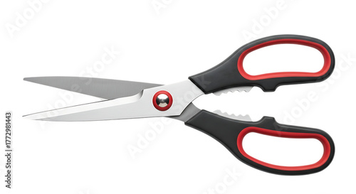 Kitchen Shears with Red and Black Handles Isolated