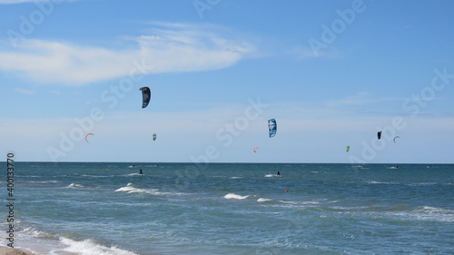 beach, sea, water, kite, sea, sport, heaven, parachute, surf, surfing, blue, wind, kiteboard, fun, summer, fly, wave, paragliding, extreme, sun, kitesurf