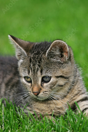 kitten lying in grass