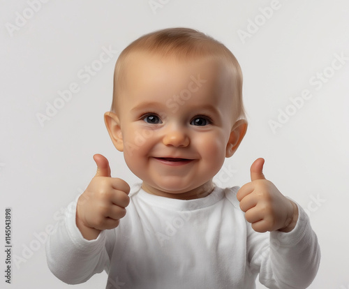 baby, children, thumb, high, happy, positive, contented, smile, portrait, close-up view, happiness, approval, childhood, baby, baby, healthy, lively, merry, beaming, lovable, cute, sweet, blithe, innocent, clean, purity, innocence, expression, mimic, gesture, emotion, feeling, photo