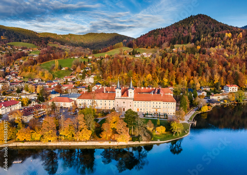 Kloster Tegernsee am Tegernsee im Herbst, Bayern, Deutschland