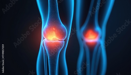 knee, joint, inflammation, pain, bone, anatomy, medicals, health, injury, arthritis, osteoarthritis, cartilage, disease, human, body, treatment, therapy, rehabilitation, doctor, specialist, patient, care, wellness, healthy, structure, joint pain, ligament, tendon, meniscus, redness, swelling, discomfort, ache, orthopedics, orthopedist, diagnosis, scan, x-ray, magnetic resonance imaging, imaging, research, science, illustration, graphic, digital, blue, red