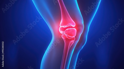 Knee joint pain, 3D rendering of blue dissected human body on blue background