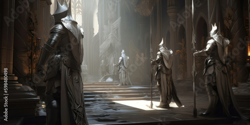 Knight and armor, fantasy world, background, digital illustration, AI generated
