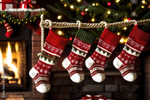 gift, hanging, rope, christmas, fireplace, festive, holiday, season, decorative, celebration, threaded, winter, stocking, seasonal, cosy, home, christmas ornament, holiday season, hand-made, ai, new york city, us, no people, generative