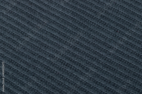 knitted textured background of dark gray color. Close-up of knit and purl loops.