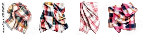 Knitwear winter collection. Textiles with plaid patterns ,isolate on white background.