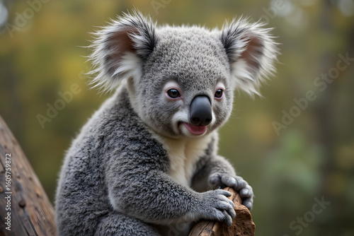 koala, sitting, looking, tree branch, animal, mammal, wildlife, cute, fur, grey, ear, eye, nose, face, closeup, portrait, outdoors, nature, tree, wood, trunk, australia, marsupial, herbivore, wild, small, fluffy, soft, adorable, fauna, forest, habitat, zoology, conservation, environment, leaf, eucalyptus, posing, wild animal, baby animal, 1, day, resting, climbing, native, flora, autumn