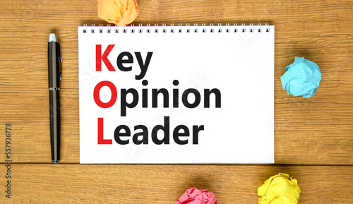 KOL key opinion leader symbol. Concept words KOL key opinion leader on white note on a beautiful wooden background. Business KOL key opinion leader concept. Copy space.