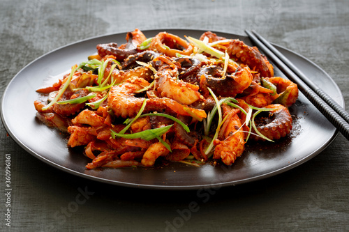 korean food, bowl, carrot, crockery, cuttlefish, dinner, fine dining, food, food and drink, epicure, horizontal, korea, lunch, marinated, meal, octopus, onion, photo, red, eatery, scallion, seafood, spice, steamed, garlic, soy sauce, pepper, plate, pasta, salad, dish, cookery, vegetable, shrimp, noodle, tomatoes, spaghetti