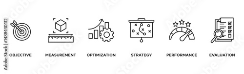 KPI banner web icon vector illustration concept for key performance indicator in the business metrics with an icon of objective, measurement, optimization, strategy, performance, and evaluation