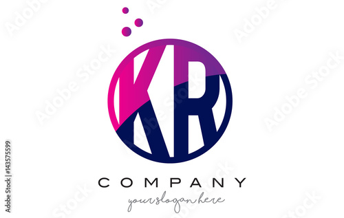 KR K R Circle Letter Logo Design with Purple Dots Bubbles
