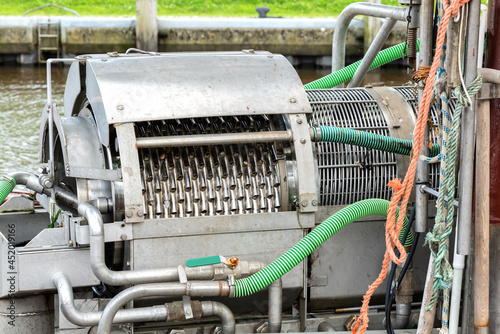 Krabbenkutter mit einer Krabbenpulmaschine - Close-up Crab pulp mschine
