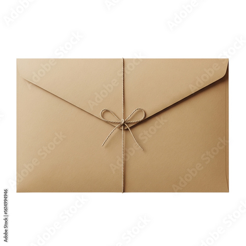 Kraft paper envelope tied with twine bow isolated on transparent background