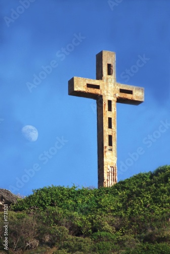 guadeloupe, antilles, caribbean, cross, moon, countryside, nature, heaven, blue, azur, dignity, faith, christianity, symbol
