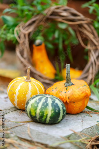 pumpkin, autumn, food, halloween, decoration, orange, green, terrace