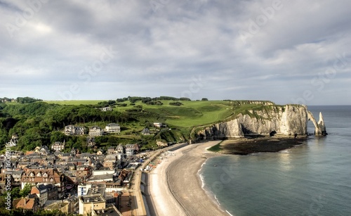 étretat, normandie, france, steep coast, coast, rock, city, beach, house, vacation, promenade