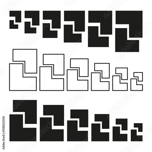 L shape set. Mixed outline fill. Modular block elements. Vector stair symbol