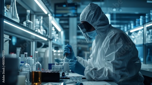 Laboratory technician preparing samples for analysis using state-of-the-art equipment, adhering to strict protocols.