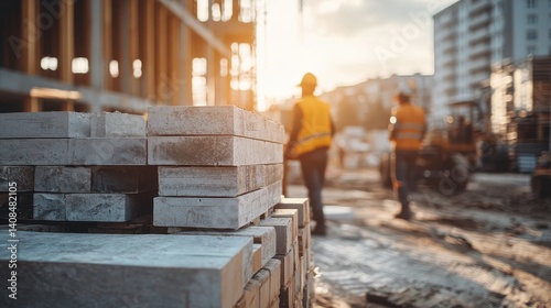 Laborer unloading building materials at a construction site. Featuring teamwork and strength
