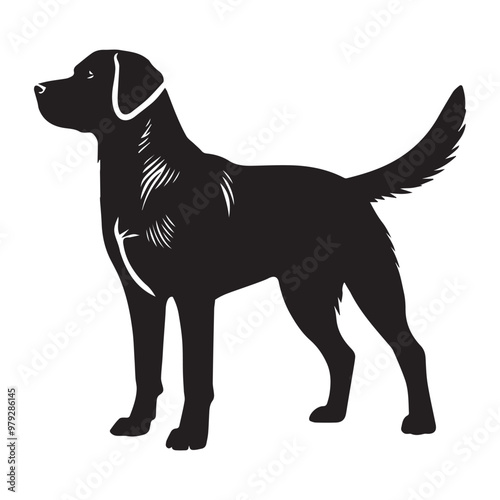Labrador Retriever dog silhouette Design, Dog Clipart vector illustration in black and white