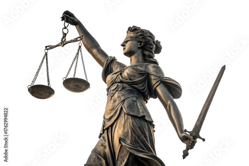 Lady Justice Bronze Statue Scales of Justice Law Concept on Transparent Background
