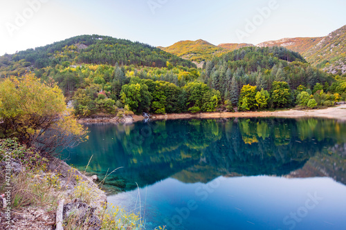 Lago di San Domenico in Abruzzo. Vicino al lago di Scanno, un paesaggio in autunno con mille colori