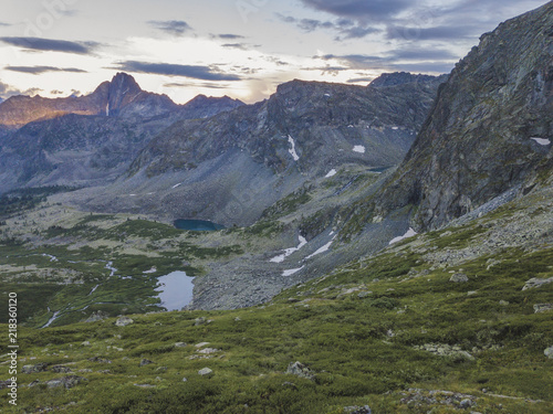 Lake in Eshtu valley. Altai Mountains landscape