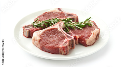 lamb chop on plate. isolated on white background.