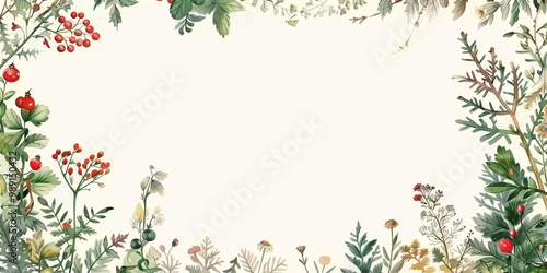 landing page. mockup made of crumpled white paper page with a frame border floral nature flowers berries forest Central page blank drawn with watercolor. scrapbooking sheets