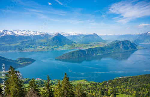 Landscape of Rigi, Lake Lucerne, Burgenstock resort and Pilatus mount. Switzerland.
