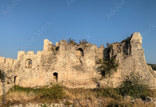 castle, wall, architecture, mediaeval, ancient, fortress, stone, history, old, landscape, ruin, sky, travel, building, historic, landmark, tour tourism, europa, historical, fort, summer, vintage, historical building, scenic, abandoned, nobody, tower, ruin, rock, fortification, hill, blue