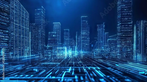 city, building, skyline, business, urban, city landscape, skyscraper, illustration, architecture, town, night, technology, design, vector, digital, building, office, three-dimensional, blue, art, datum, light, construction, sky, tower