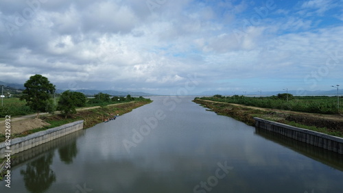 aerial view, lake, canal, river, landscape, water, sky, environment, scenery, travel, scenic, nature, beautiful, green, background, summer, beauty, blue, natural, boat, adventure, day, ecology, tour tourism, recreation, leisure, countryside, scene, outside, panorama, indonesia, view, road