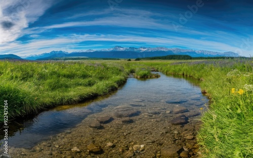 landscape, water, nature, river, sky, grass, lake, summer, green, cloud, forest, meadow, field, stream, mountain, cloud, tree, sea, environment, rural, autumn, horizon, countryside, park