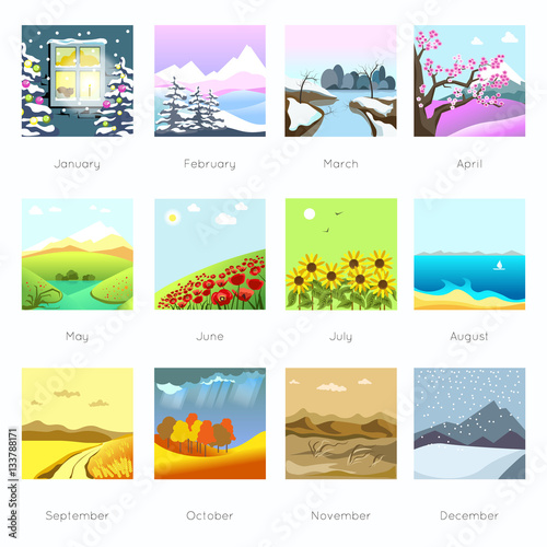 Landscapes in different season, weather.