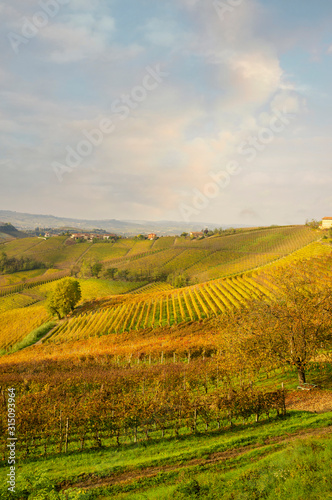 Langhe vineyards panorama, near the village of Serralunga d'Alba (Cuneo Province, Piedmont, Italy) UNESCO Site.