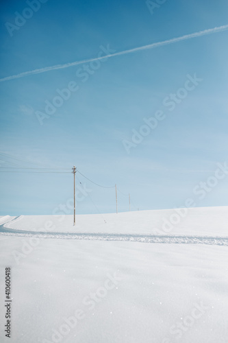 snow, winter, heaven, ski, cold, countryside, blue, nature, force, mountain, road, white, electricity, electric, cable, tree, ice, raise, energy, pole, duct, cloud, season, glacé, ski