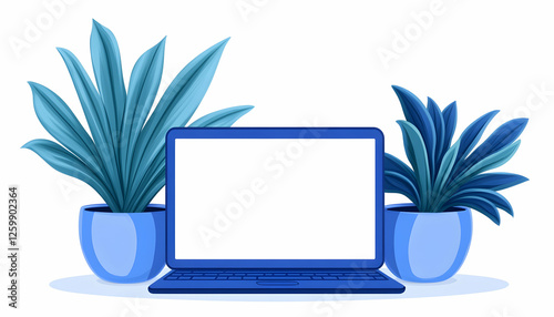 laptop, screen, blank, plant, pot, room, advertisement, design, workspace, computer, office, technology, business, white, modern, interior, work, space, online, desk, table, cyberspace, communication, display, device, digital, mock, up, background, empty, object, presentation, copy, template, isolated, indoor, contemporary, style, contraption, electronic, portable, minimalist, creative, website, information, interface, home