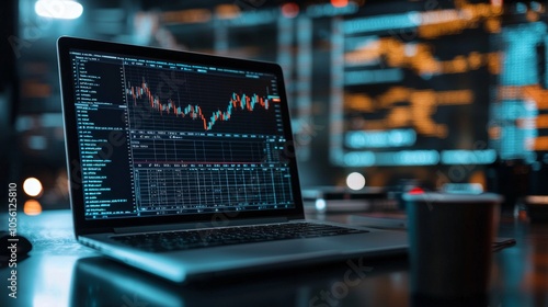 laptop, stock exchange, graph, financial, analysis, office, modern, trading, datum, business, growth, finance, desk, workspace, technology, economy, monitor, investment, screen, trade