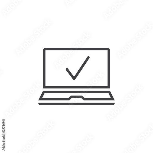 laptop with check mark line icon, outline vector sign, linear pictogram isolated on white. logo illustration