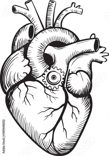 Large Anatomical Heart Vector Illustration Filled with Detailed Medical and Artistic Elements