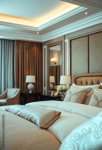 bedchamber, bed, room, interior, hotel, home, furniture, design, house, luxury, lamp, window, apartment, pillow, sofa, light, comfortable, architecture, nobody, decor, carpet, indoor, wall, contemporary, curtain